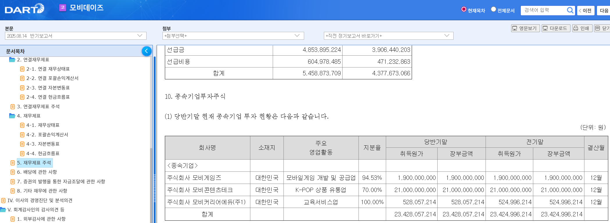 모비데이즈 자회사 목록